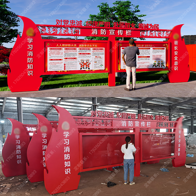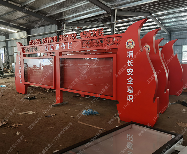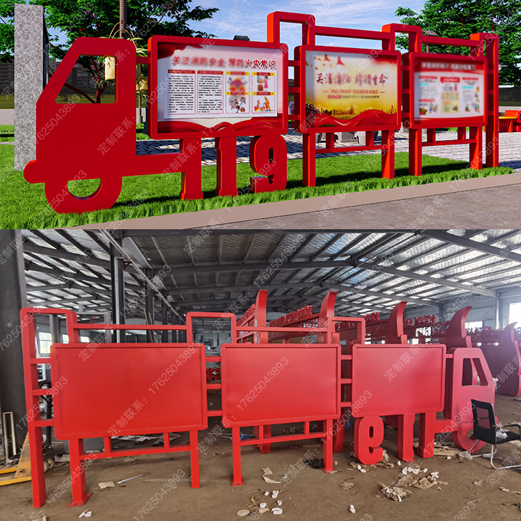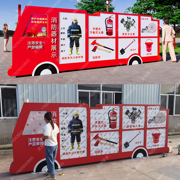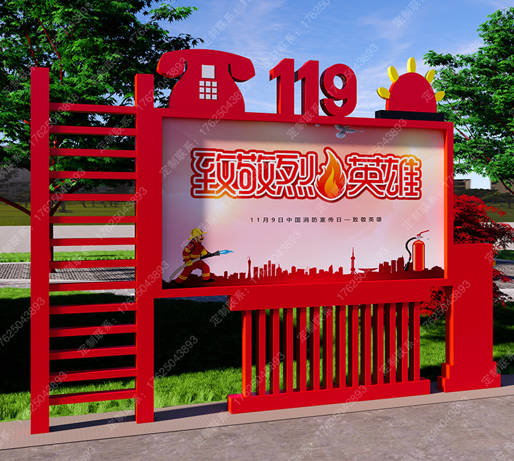 消防知識宣傳欄119主題公園標(biāo)識牌座椅消防車器材展示滅火器雕塑