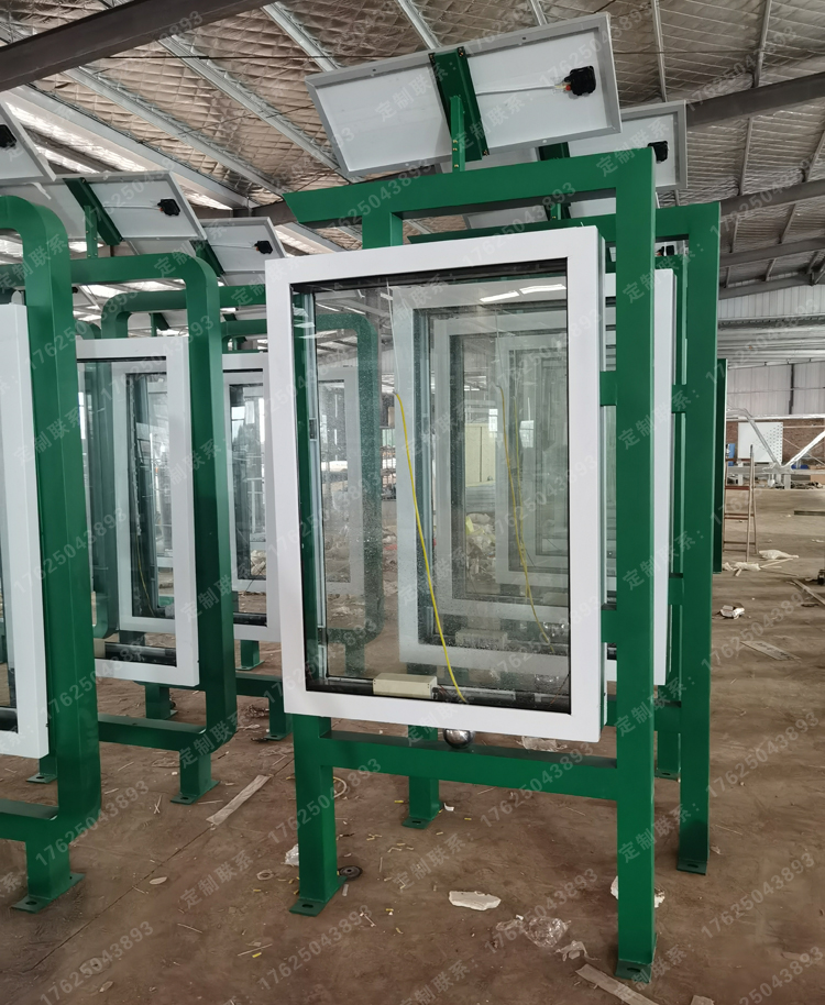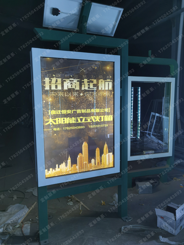 太陽(yáng)能供電系統(tǒng)白天轉(zhuǎn)換儲(chǔ)備電能,晚上箱體發(fā)光。它不僅省電,保護(hù)環(huán)境,還起到廣告媒體和美化環(huán)境的作用。